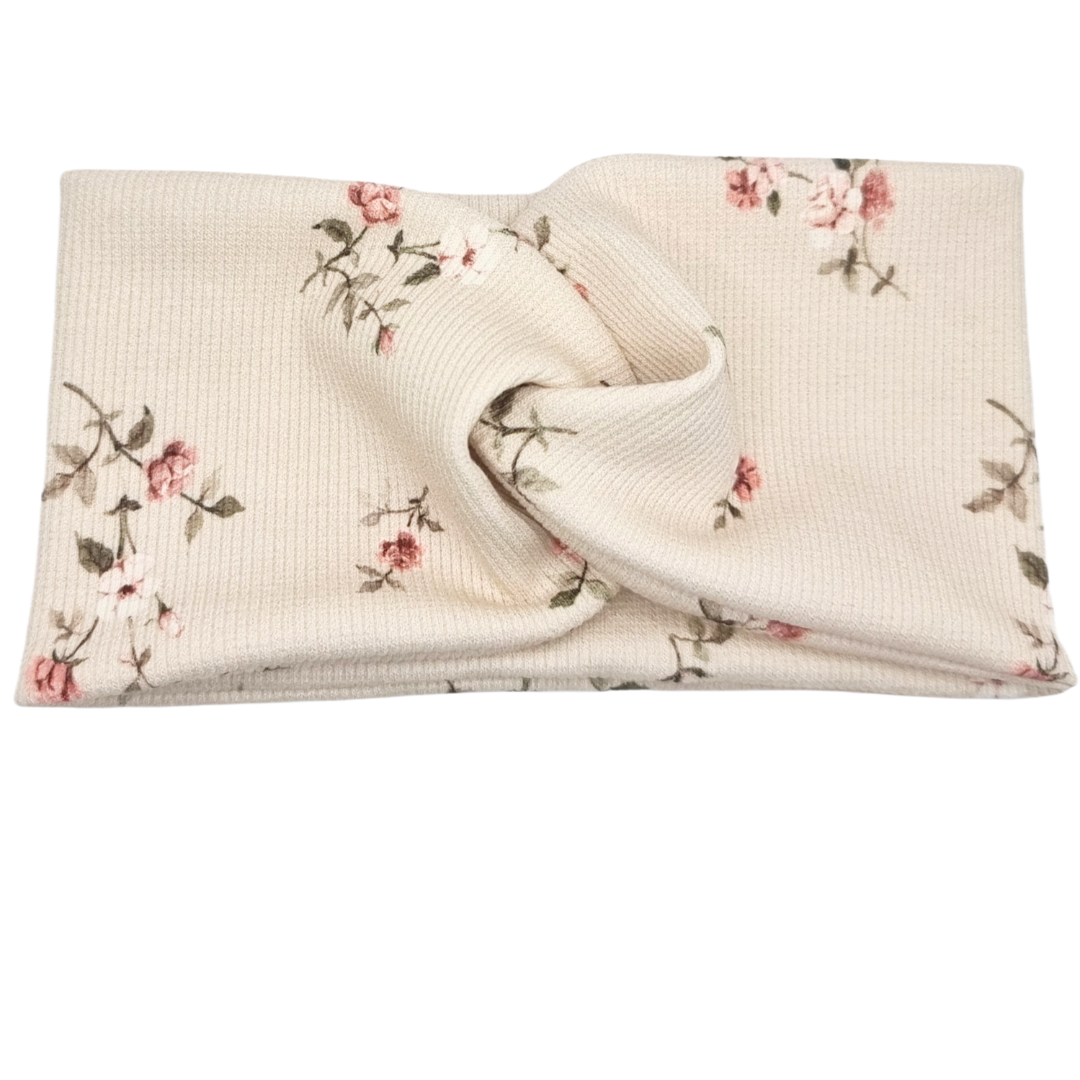 Opaska szeroka przeplatana na głowę beżowa w drobne kwiatki