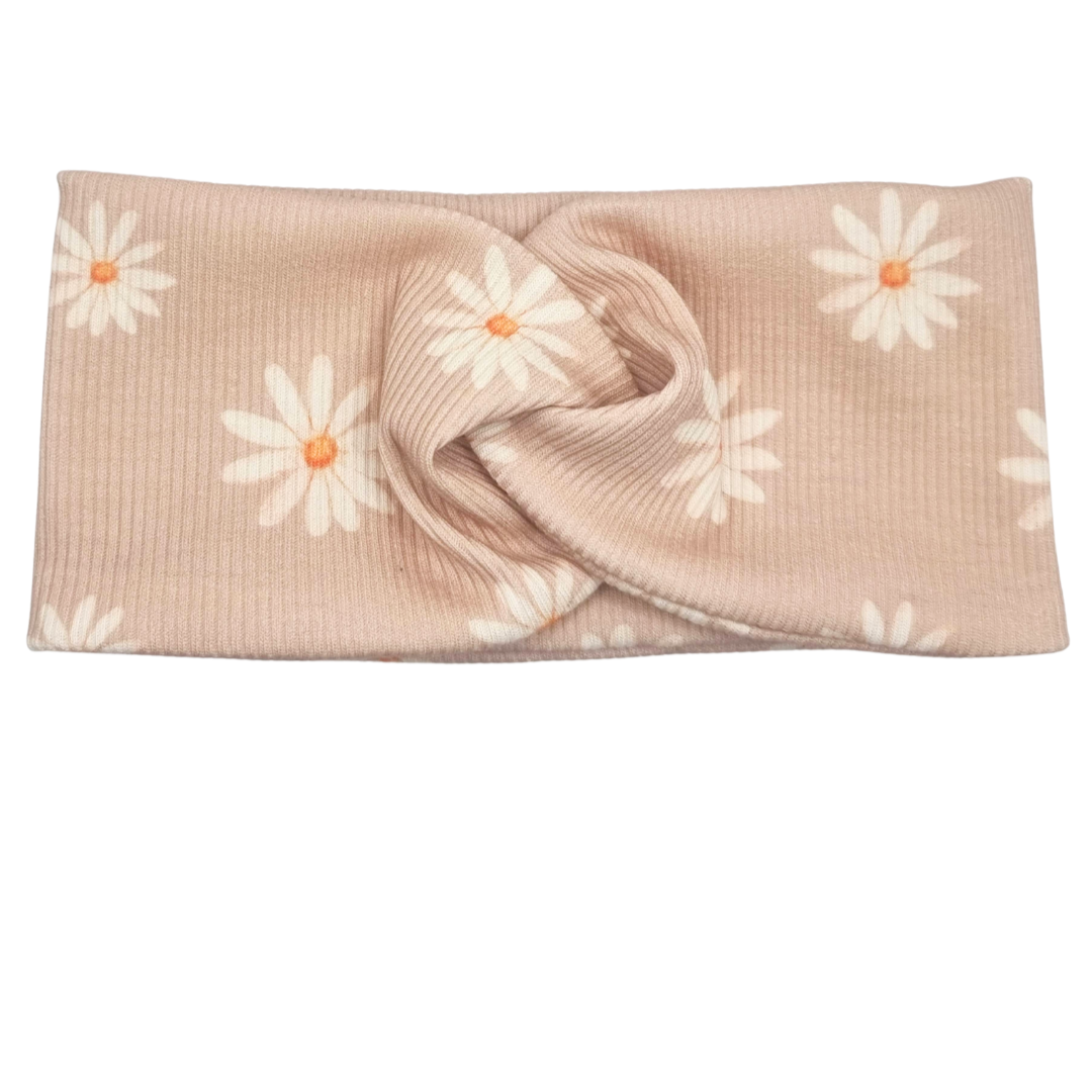 Opaska szeroka przeplatana na głowę beżowa w małe stokrotki