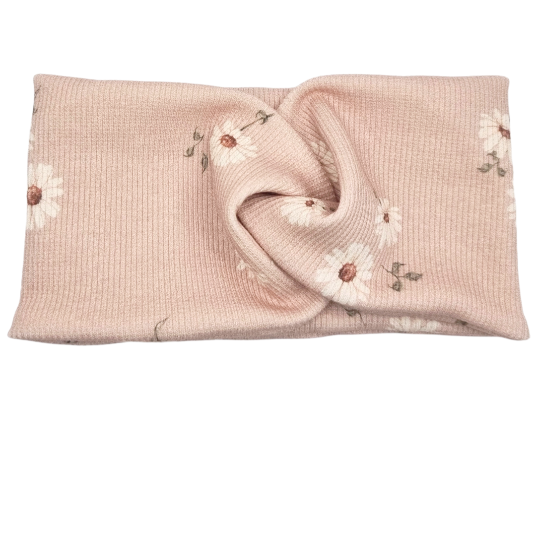 Opaska szeroka przeplatana na głowę brudny róż w mini stokrotki
