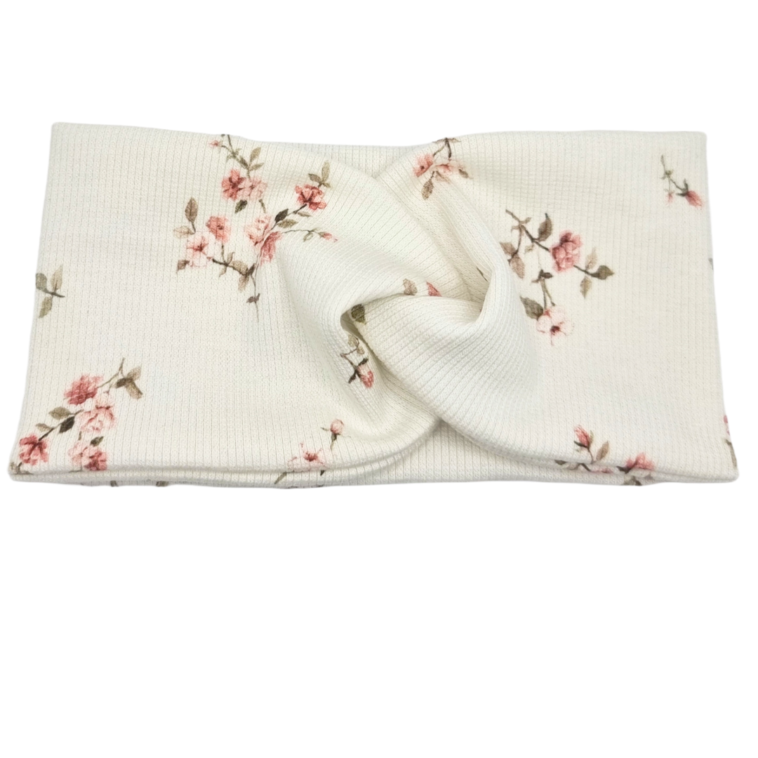 Opaska szeroka przeplatana na głowę ecru w drobne kwiatki